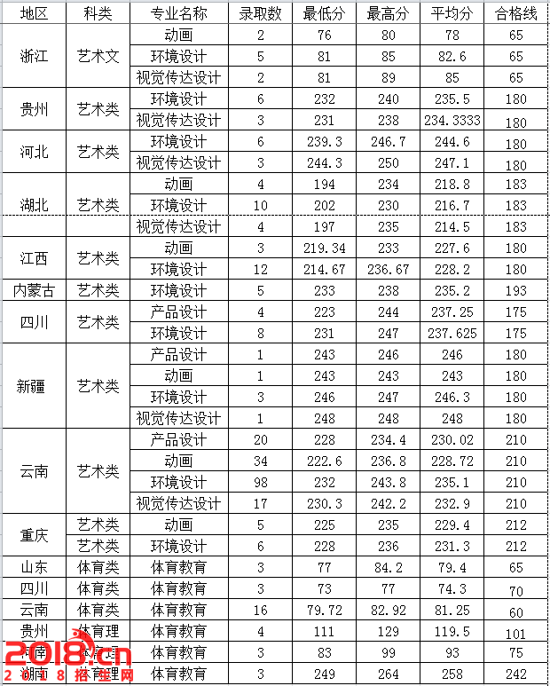 西南林业大学2016年全国各省份艺术类体育类录取情况表